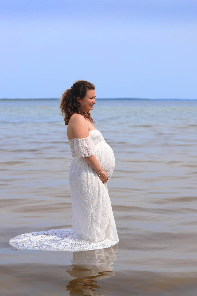 Le moment idéal est aux environs de 7/8 Mois. La séance se déroule soit en studio à Moustey, soit en extérieur dans un joli cadre choisi ensemble.